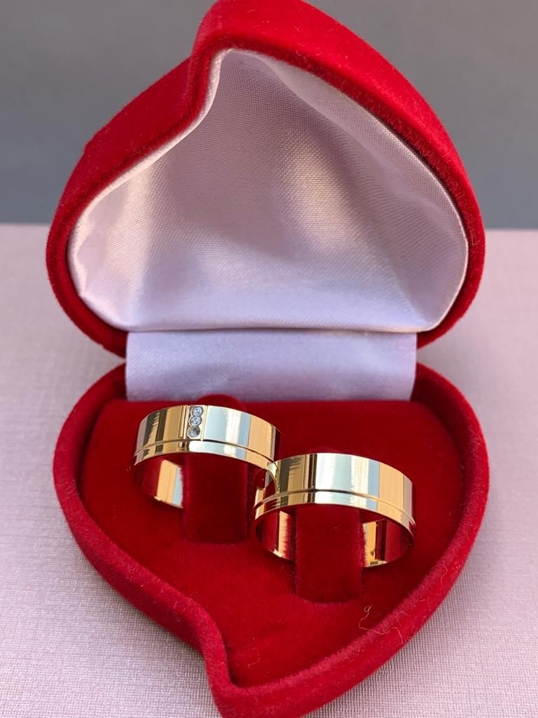 Par de aliança de ouro 12k reto por dentro e por fora com corte lateral 6mm