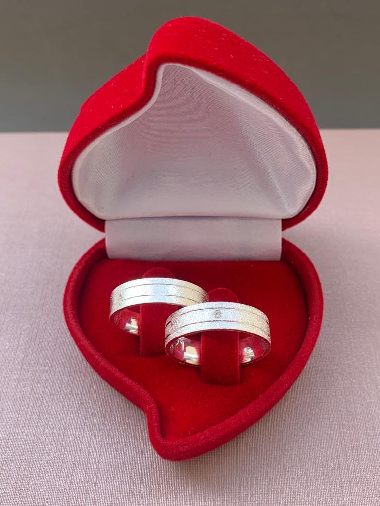 Par de aliança de prata reta anatômica com acabamento diamantado e 2 frisos 5 mm