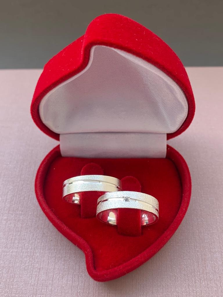 Par de aliança de prata reta anatômica com acabamento diamantado e friso 5mm