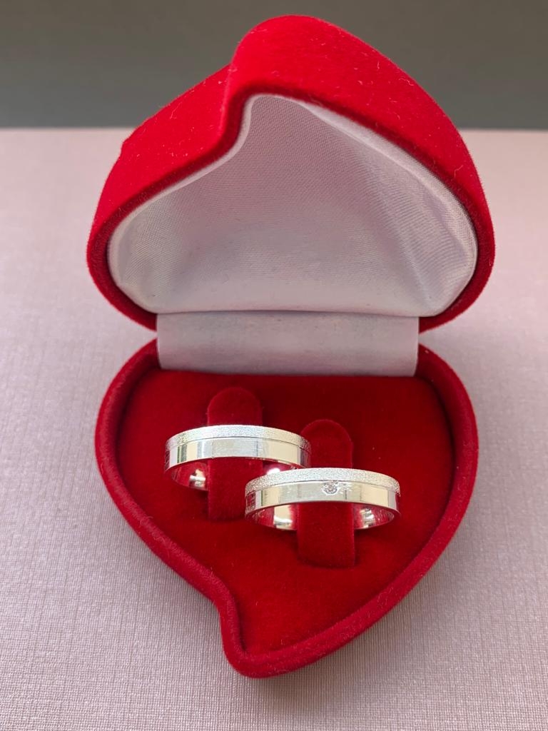Par de aliança de prata reta anatômica lateral fosca 4mm