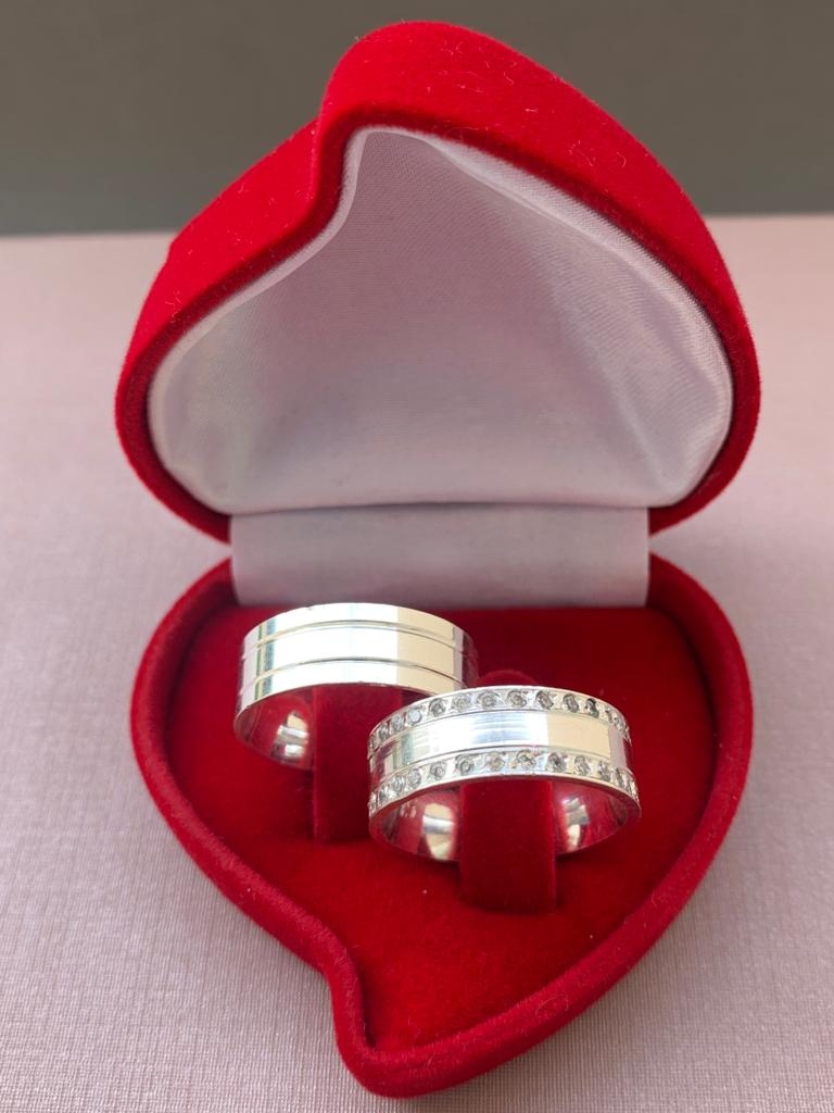 Par de aliança de prata reta anatômica lisa com 2 frisos 7mm