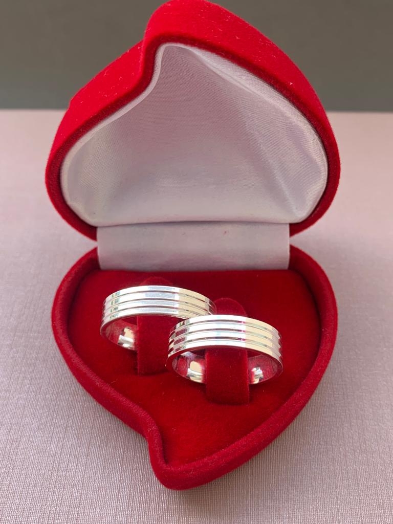 Par de aliança de prata reta anatômica lisa com 3 frisos 6mm