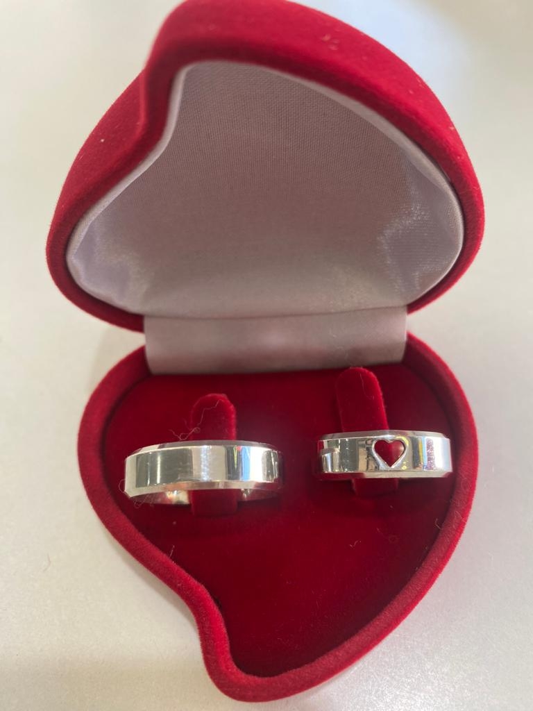 Par de aliança de prata reta anatômica lisa com canto quebrado 6mm