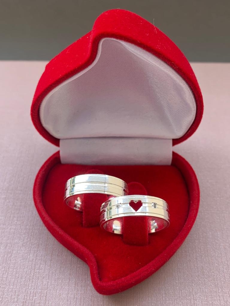 Par de aliança de prata reta anatômica lisacom cortes laterais e friso 6mm