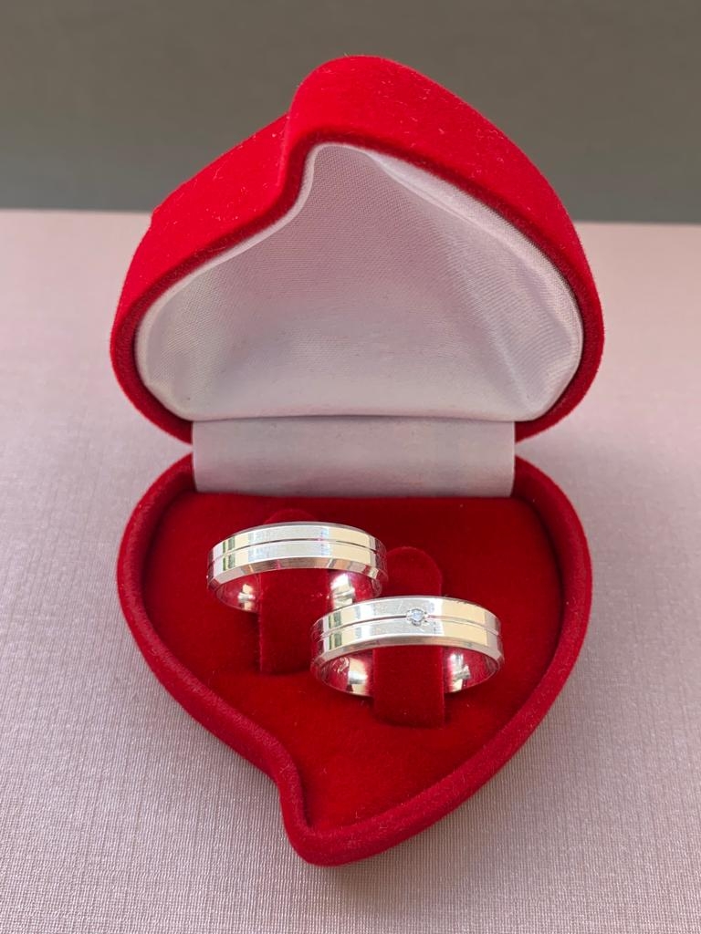 Par de aliança de prata reta anatômica liso e friso central 5mm