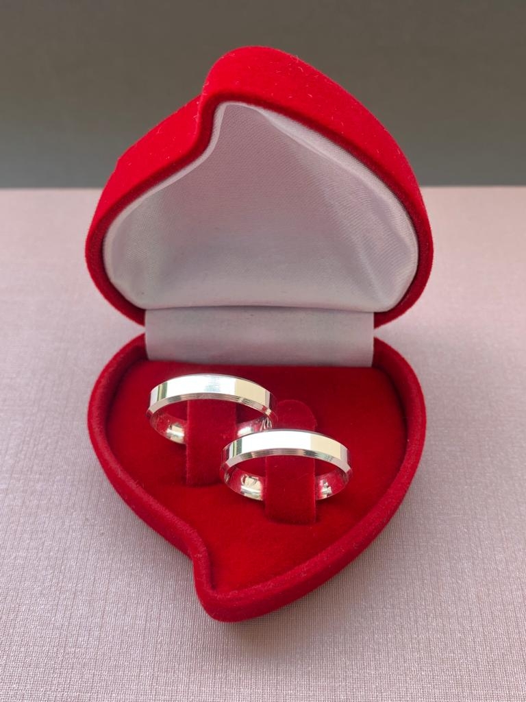 Par de aliança de prata unissex reta anatômica canto quebrado